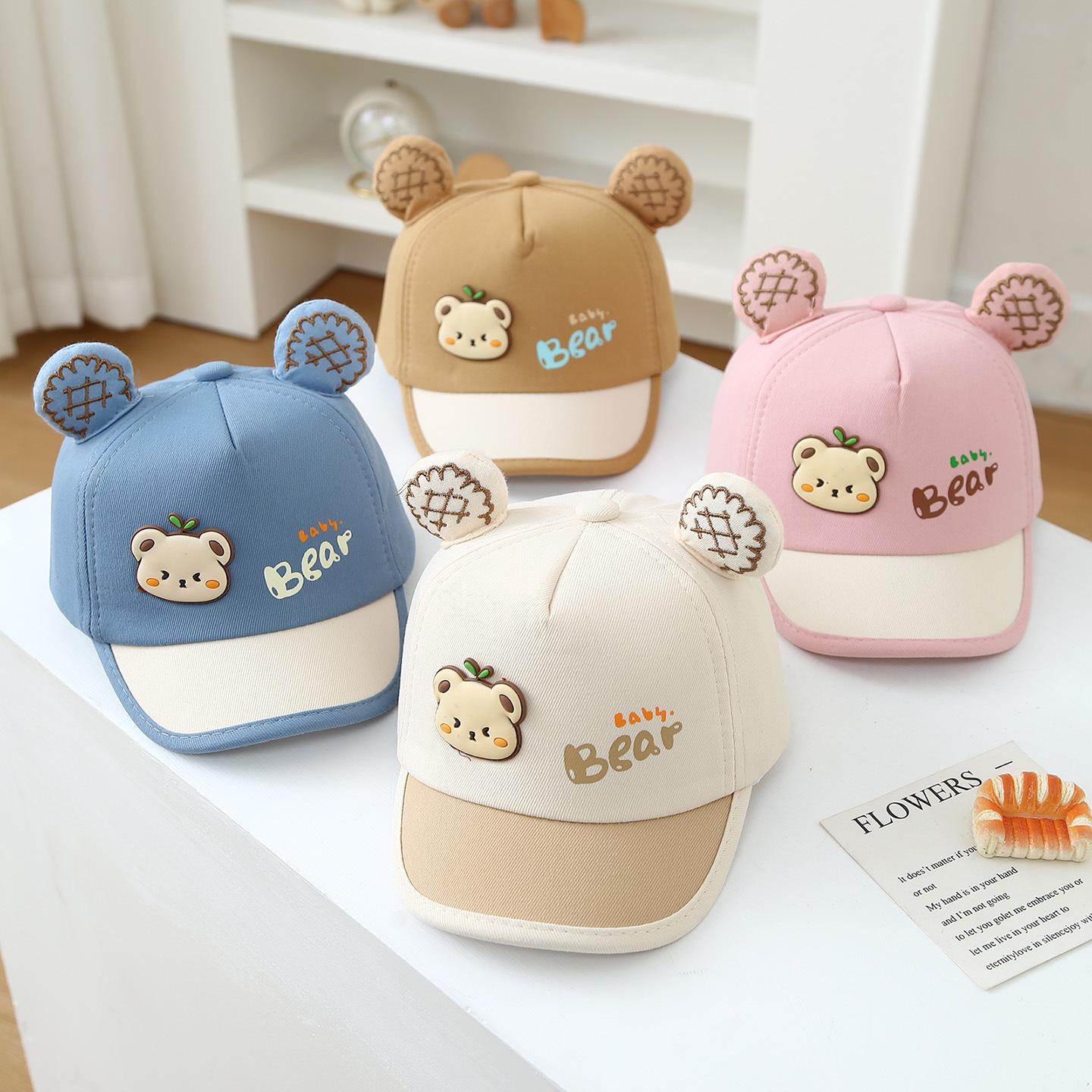 Korean Style Cartoon Bear Baby Sun Hat - Color Block Duckbill Cap for Children 48cm pink