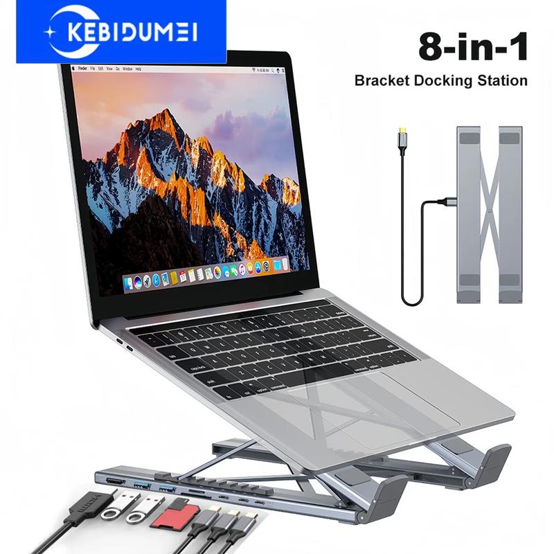 USB C Bærbar PC Dokkingstasjon Stativ med 8-i-1 HUB USB3.0 4K HDMI SD TF Kortleser Justerbart Aluminiumsfeste for PC Bærbar PC