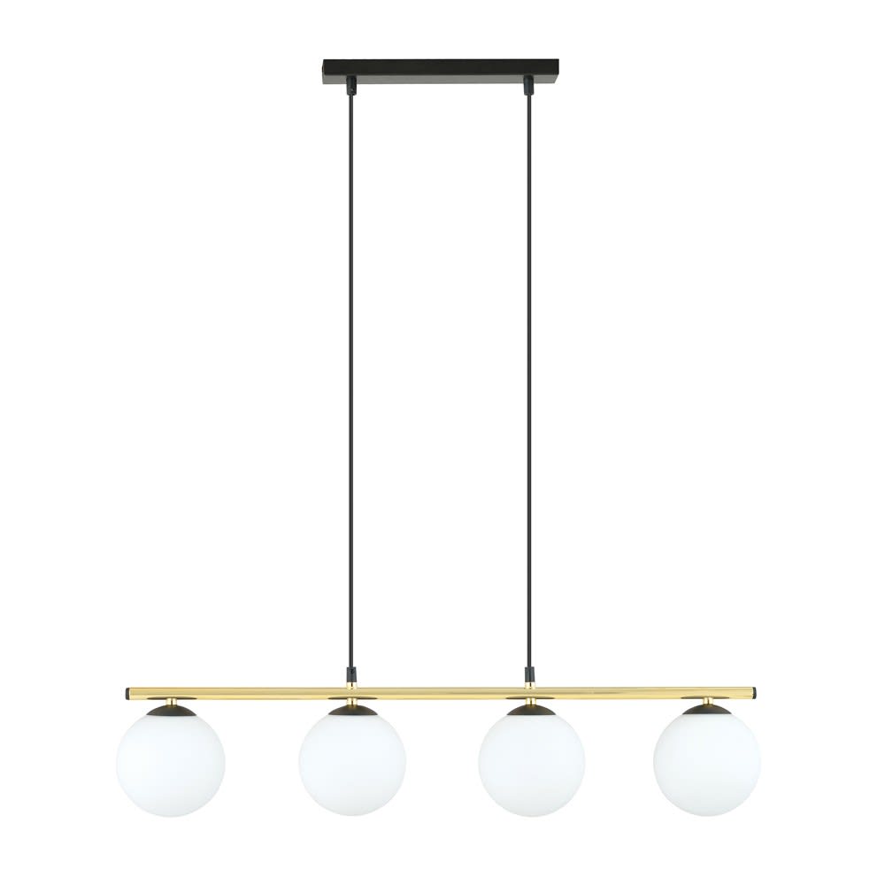 Lampada a sospensione in stile nero e dorato con 4 sfere opaline