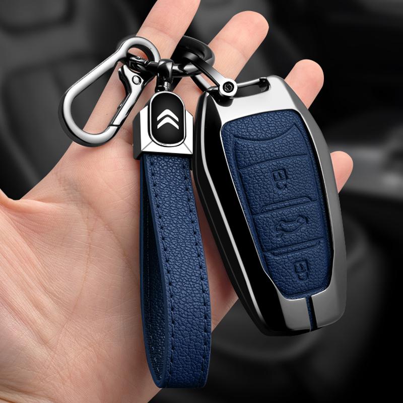 Metalen Lederen Auto Afstandsbediening Sleutelhoes Cover Sleutel Beschermer Fob Voor Citroen C1 C2 C4 C6 C3-XR Picasso Grand DS3 DS5 Auto Accessoires