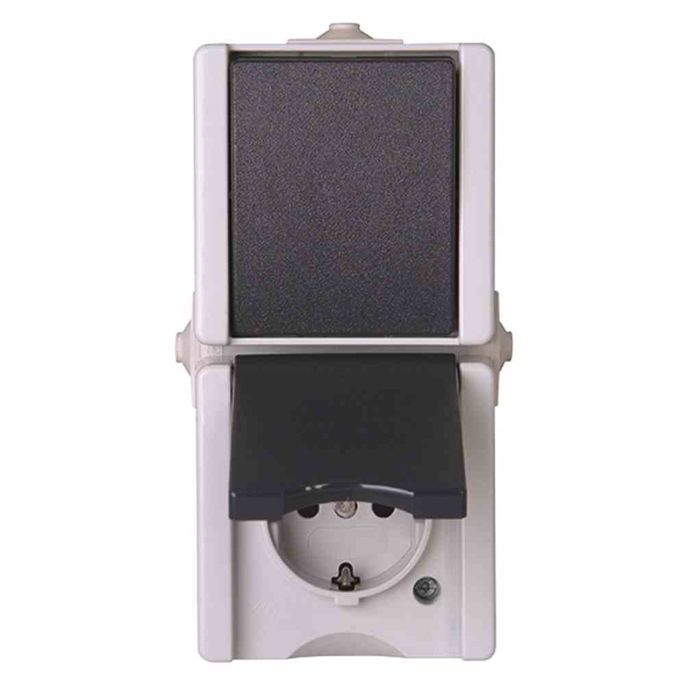 Merten AQUASTAR Steckdose, 1f, lichtgrau, matt, Aufputz, horizontal/vertikal, mit Klappdeckel, IP44, Komplettgehäuse