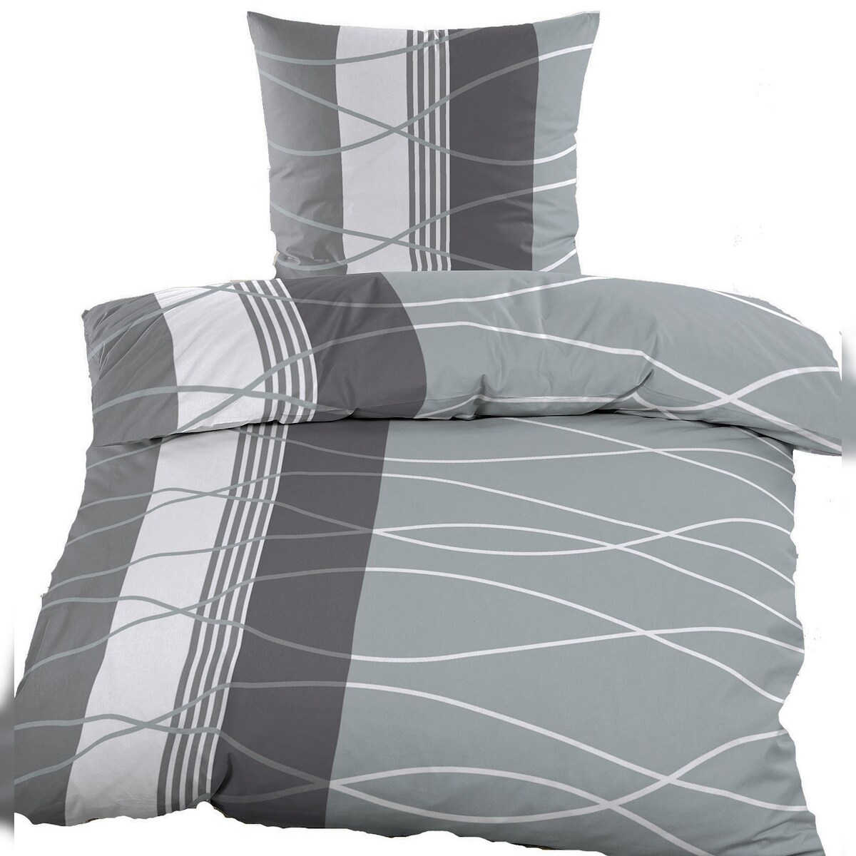 KH-Haushaltshandel Biber Winter Bettwäsche 135 x 200 + 80x80 cm, 100% Baumwolle, grau weiß, Wellen/Streifen