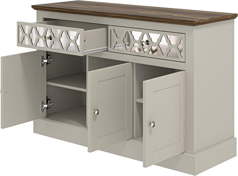 Galano Sufly 3-Door 2-Drawer Sideboard – Storage Cabinet with Drawers and Shelves for Living Room, Bedroom, or Kitchen – Ivory/Oak Finish