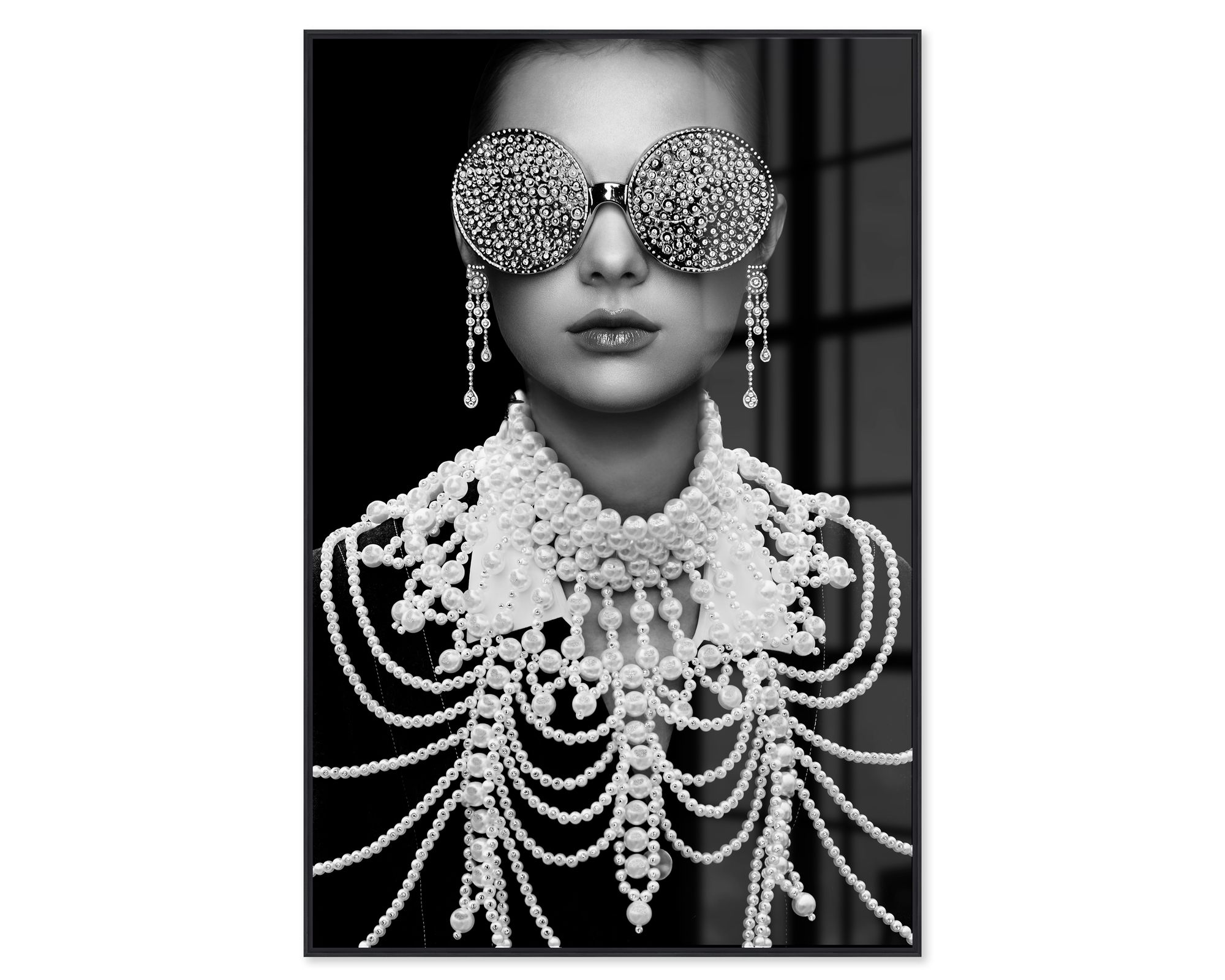 La Casa »Lady with pearl necklace« Glasbild mit Strassapplikation 80x120 cm