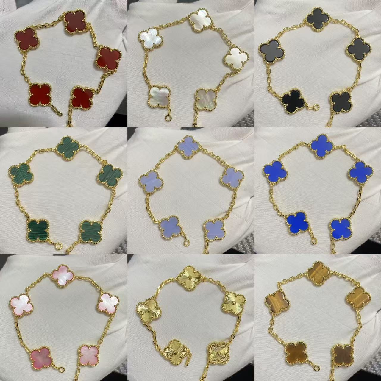 Nieuwe Versie Klavertje Vier Vijf-bloemen Armband Natuurlijke Rode Agaat Witte Parelmoer Armband Dames Laser Armband
