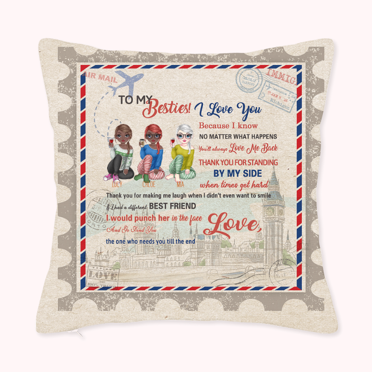 Personalizzato To My Besties I Love You Travel Stamp Throw Pillow Cover Regalo per il migliore amico Decorazione per la casa