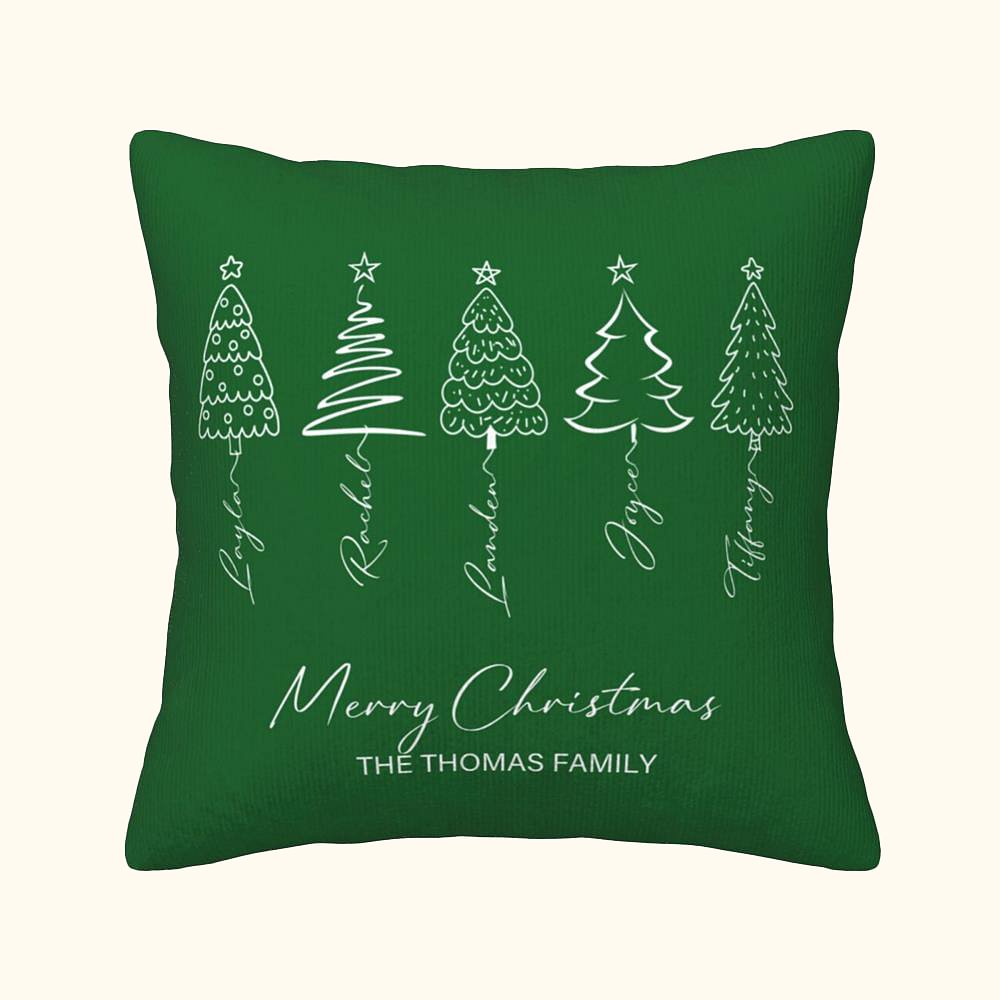 Personlig Line Christmas Tree Throw Pillow Cover med 1-8 navn og tekst Festival Home Decor Julegave til familien