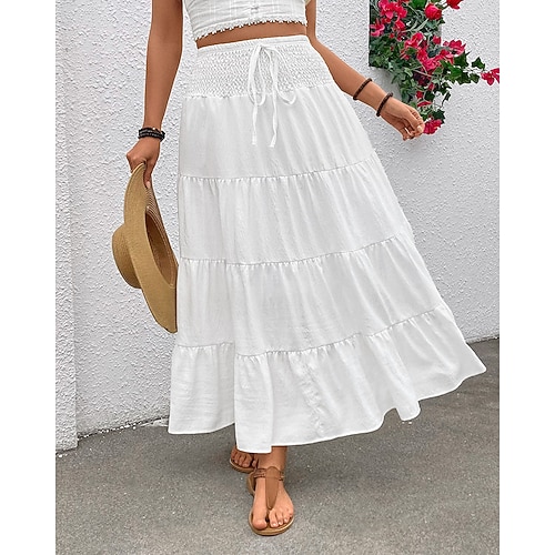 Per donna Gonna Elegante Bohemien Casual Maxi Vita media Gonne Semplice Arricciato Coulisse Stratificato Micro-elastico Quotidiano Streetwear Vinaccia blu navy Nero Rosa Estate Poliestere