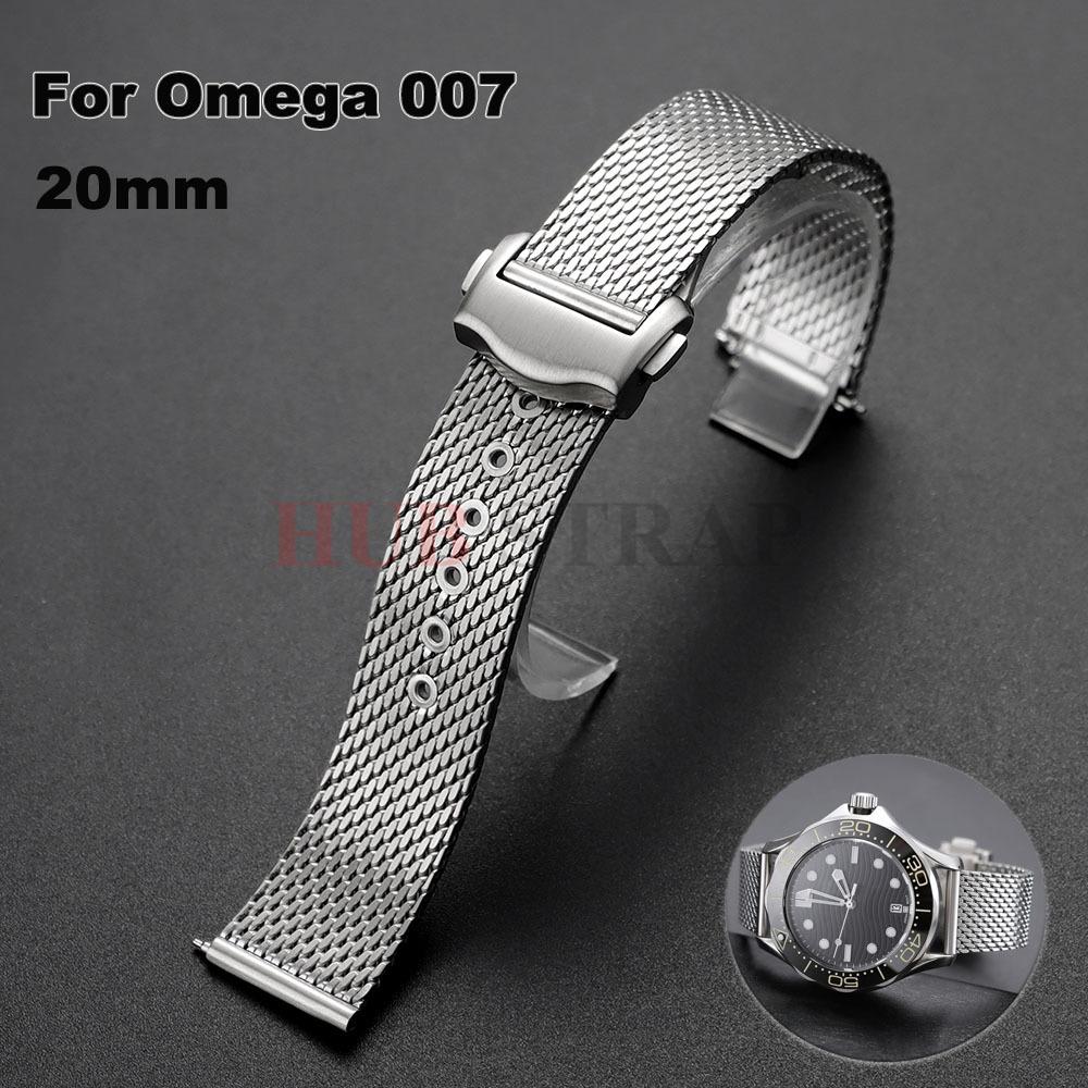 20mm voor Omega Seamaster Roestvrij Staal Band Vlakke Interface Mesh Horlogeband Zakelijk voor Herenmode Snelkoppeling Horlogeband zilver