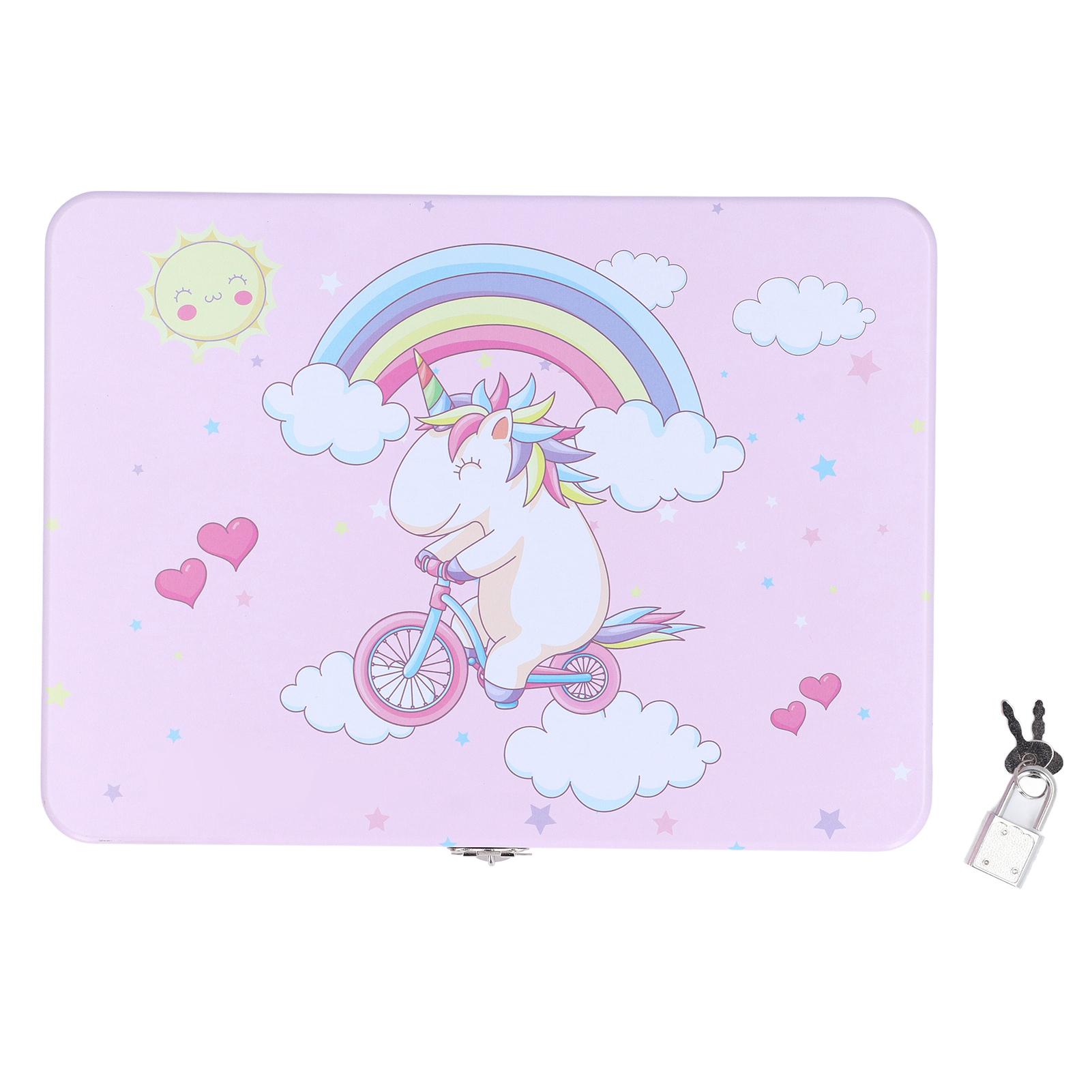 Förvaringslåda för barn med lock och lås Tecknad Söt Plåt Metall Sparbössa för Pojkar Flickor Födelsedagspresenter Heminredning