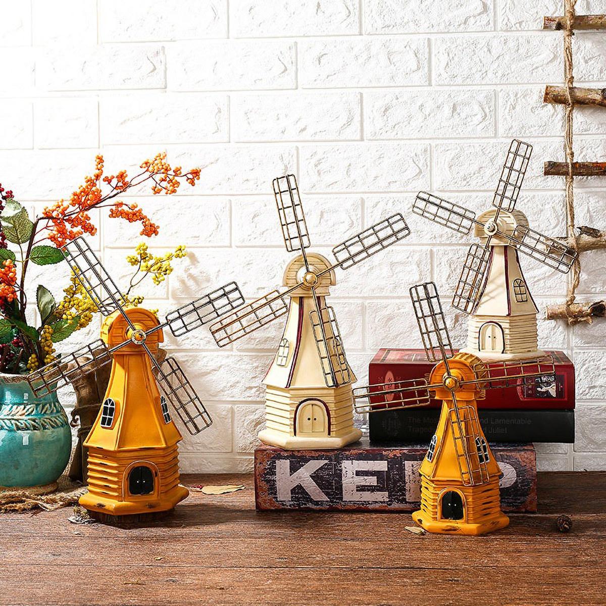 Décor de Table Moulin à Vent Hollandais Vintage en Résine Peint à la Main Décor de Village de Noël Ferme pour Étagère et Cheminée Cadeau de Collection