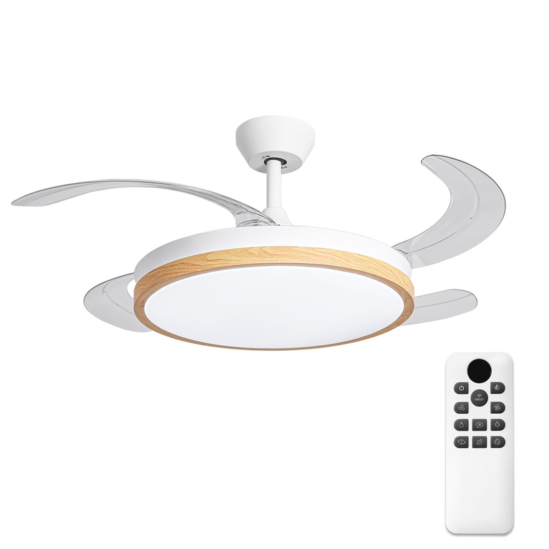 Parrot Uncle 42-Zoll-Deckenventilator mit Licht und einziehbaren Flügeln, 36W DC-Motor, Weiß-Holz-Optik