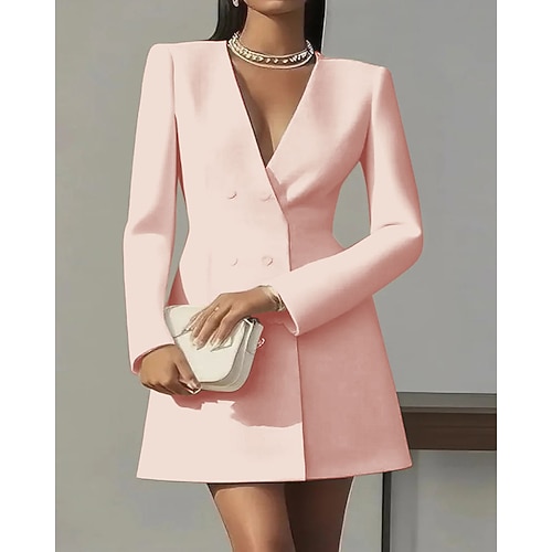 Per donna Mini Abito Abito blazer Tubino Elegante Moda Moderno Quotidiano Ufficio Ferie Vestibilità regolare Semplice Manica Lunga Scollo a V Nero Giallo Rosa Rosso Autunno Inverno