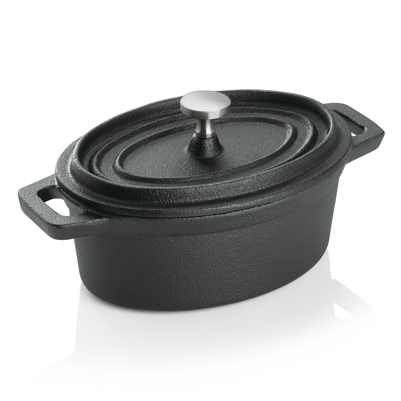 8x Cocotte schwarz Gusseisen 12,5 x 9,5 x 6,5 cm mit Deckel