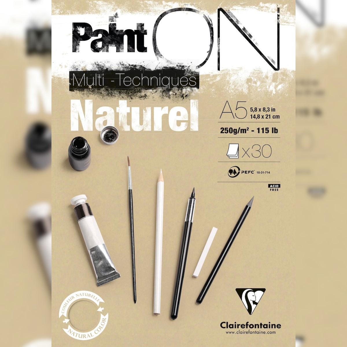 Clairefontaine 4x PaintON Naturel, Block A5, kopfseitig geleimt, 30 Blatt, 250g, Sand, Mixed Media - 96539C