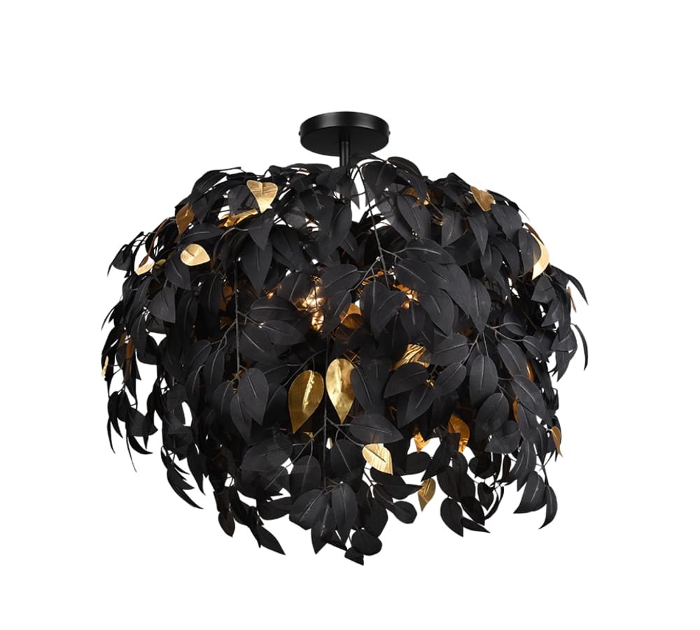 Plafoniera 3 luci, metallo, nero opaco, 70x70x73 cm