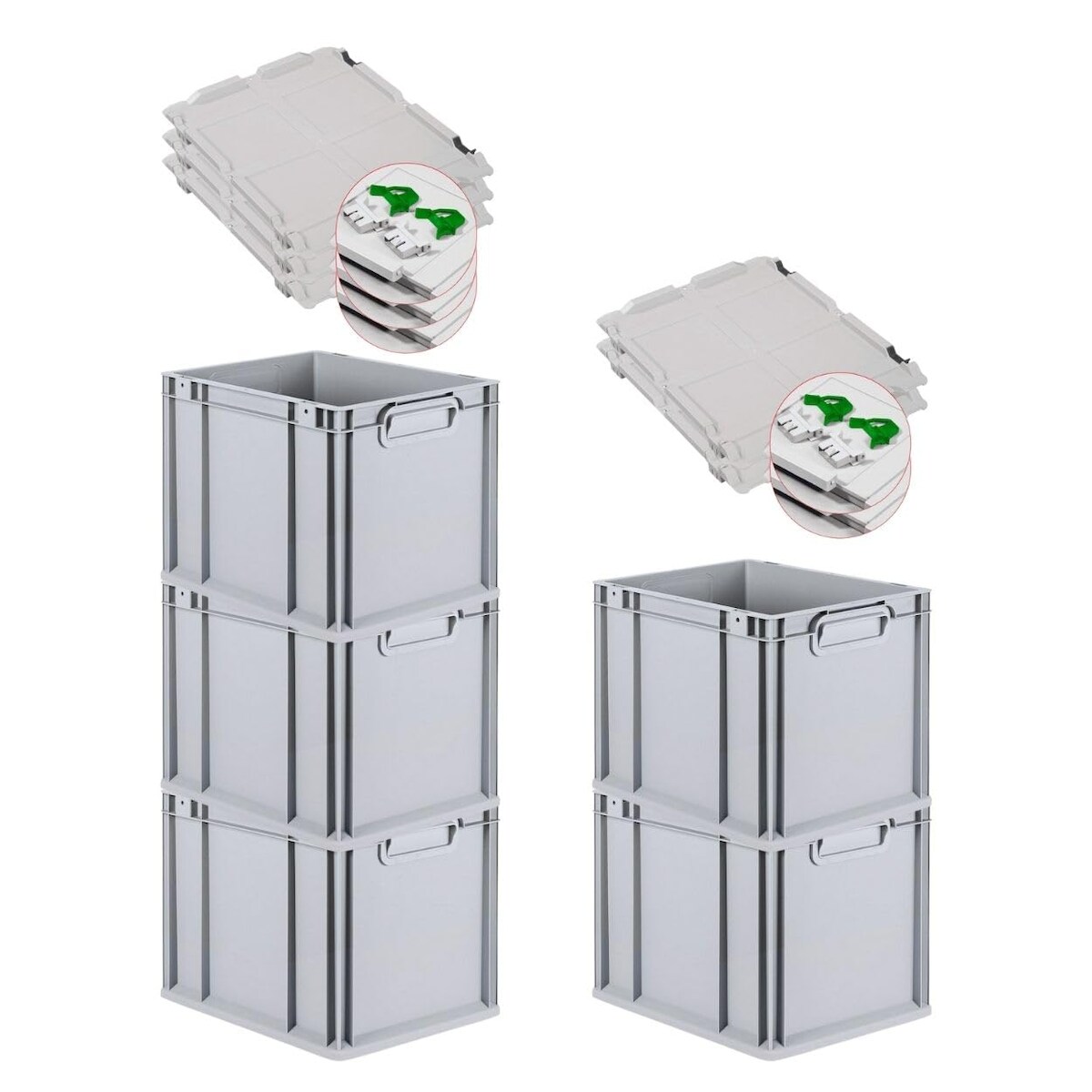 PROREGAL SuperSparSet 5x Eurobox NextGen Economy mit Scharnierdeckel & grünen Verschlüssen, Griffe zu, HxBxT 32x30x40cm, 30L, Eurobehälter, Box