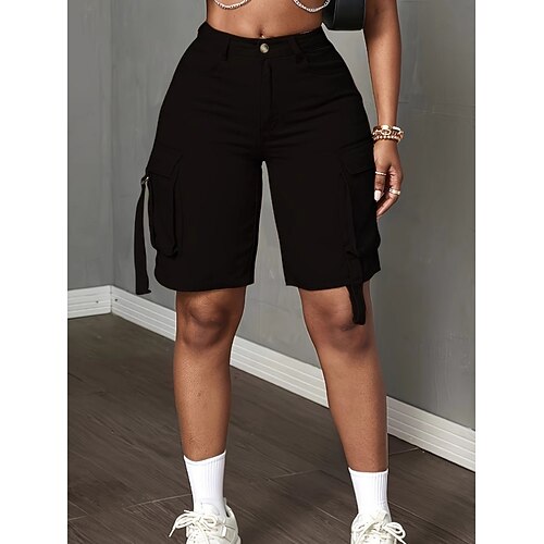Per donna Pantaloncini cargo Shorts Pantaloncini Estivi Vacanza Moda Streetwear Corto Vita Alta Tinta unica Semplice Tasca Traspirabilità Confortevole Inelastico Quotidiano Vacanza Formale Nero