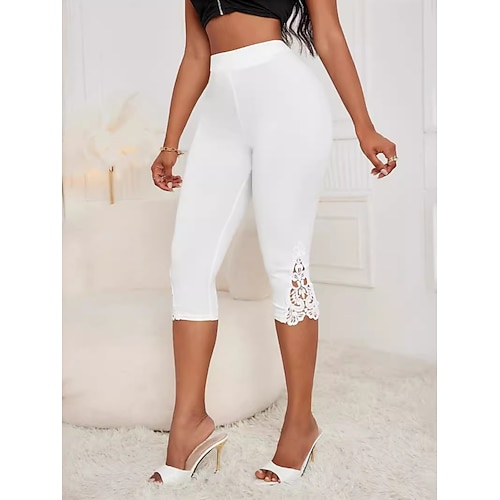 Per donna Pantaloni capri leggings casual Vacanza Moda Streetwear Lunghezza al polpaccio Vita Alta Semplice Pizzo Elastico in vita Comodità Elasticizzato Quotidiano Vacanza Streetwear Bianco Estate