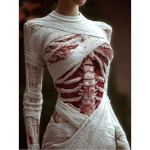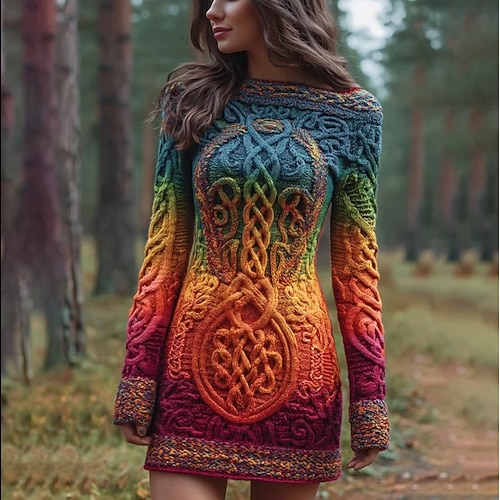 Per donna Mini Abito Abito in maglia Vacanza Casual Boho Quotidiano Ferie Uscire Taglia piccola Grafico Teschio Manica Lunga Girocollo Nero Bianco Rosso Arancione Autunno Inverno