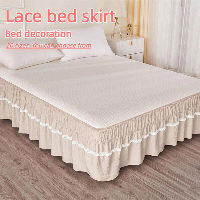 Thick Bed Skirt Non Slip With Lace Princess Design Elastic Bed Ruffle Skirt For Home Decor Stylish Bed Covering Single Piece In Elegant Colors white