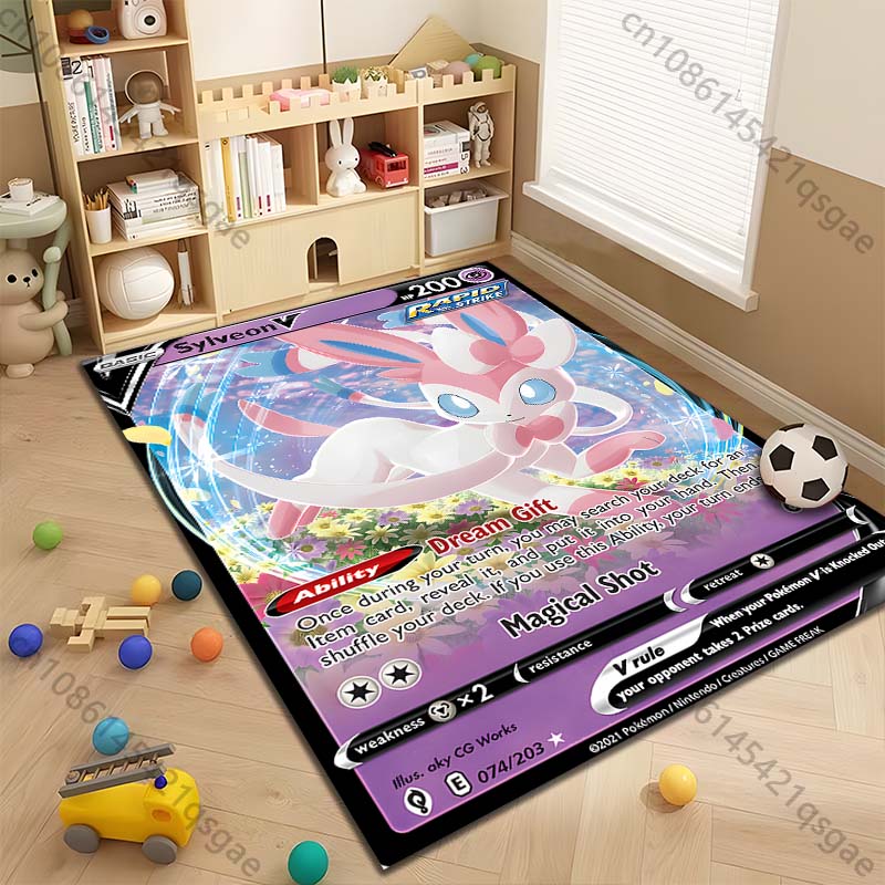 1PC Sylveon Pokémon Cards Print Rug Carpet for Living Room Children Bedroom Mat Sofa Doormat Floor Rug Home Decor Anti Slip Mat