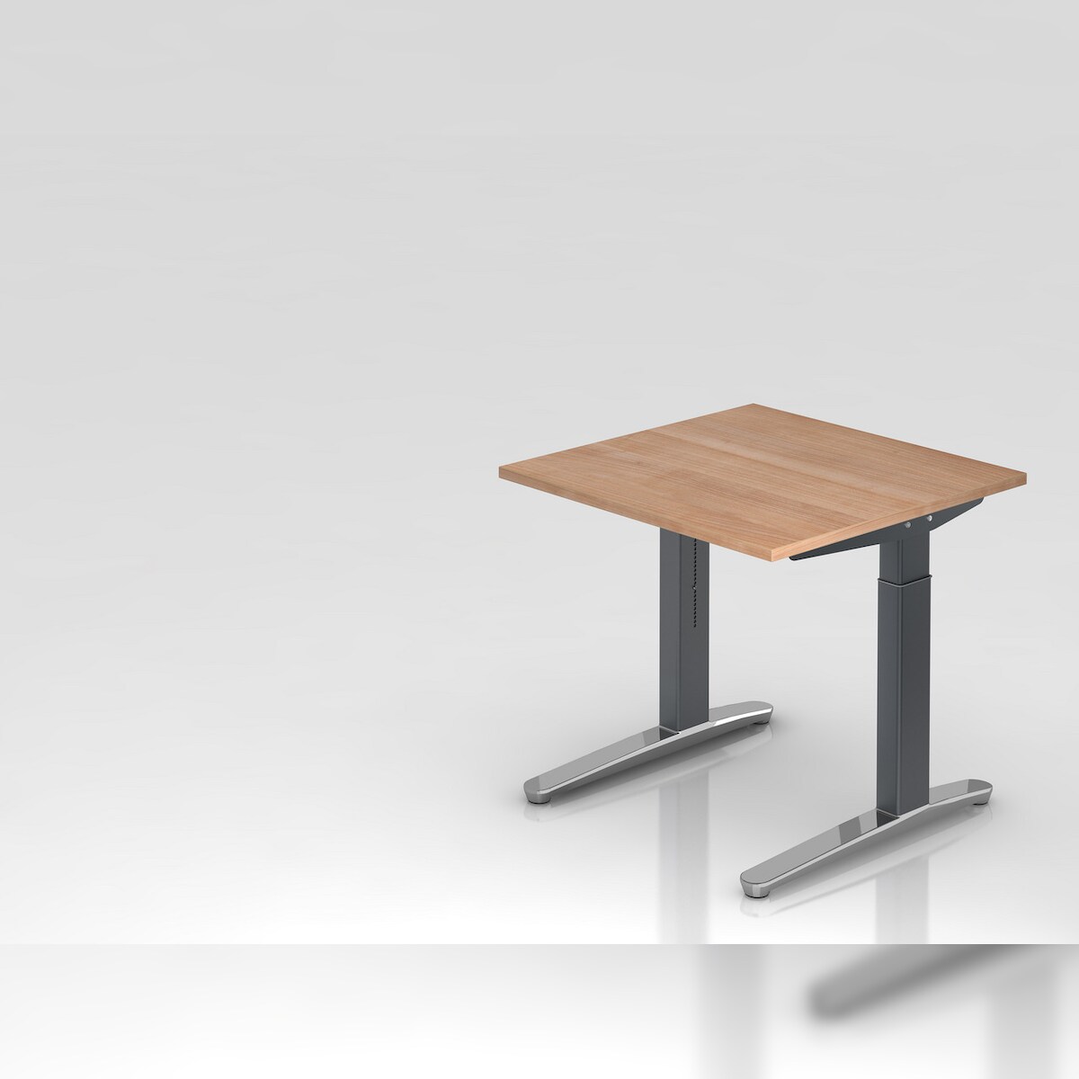 PROREGAL Schreibtisch Mika | Buche | Graues Gestell poliert | BxT 80x80cm | Arbeitshöhe 65-85cm | höhenjustierbar, 1cm Raster | C-Fuß-Gestell