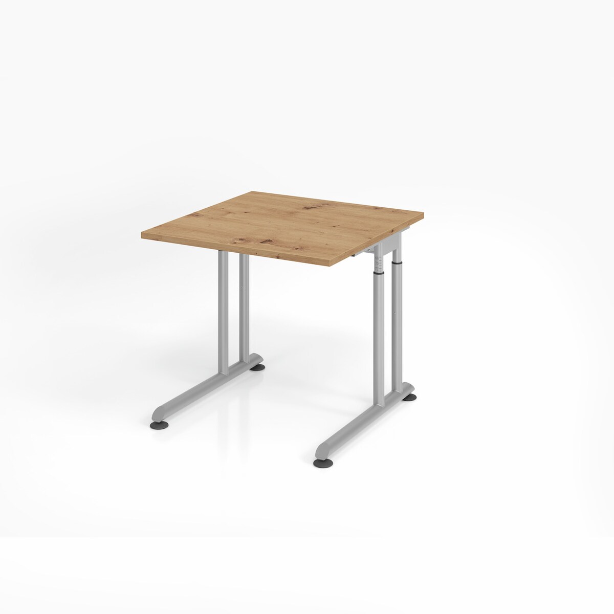 PROREGAL Schreibtisch Nilo | Asteiche | Silber Gestell | BxT 80x80cm | Arbeitshöhe 68-82cm | höhenjustierbar, 1cm Raster | C-Fuß-Gestell