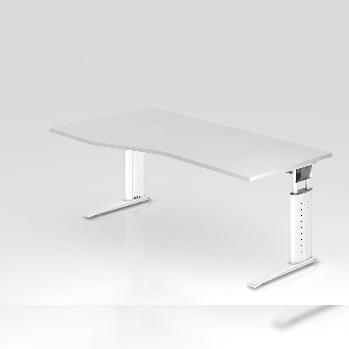 PROREGAL Schreibtisch Mika | Asteiche | Weißes Gestell | BxT 180x80cm | Arbeitshöhe 65-85cm | höhenjustierbar, 1cm Raster | C-Fuß-Gestell