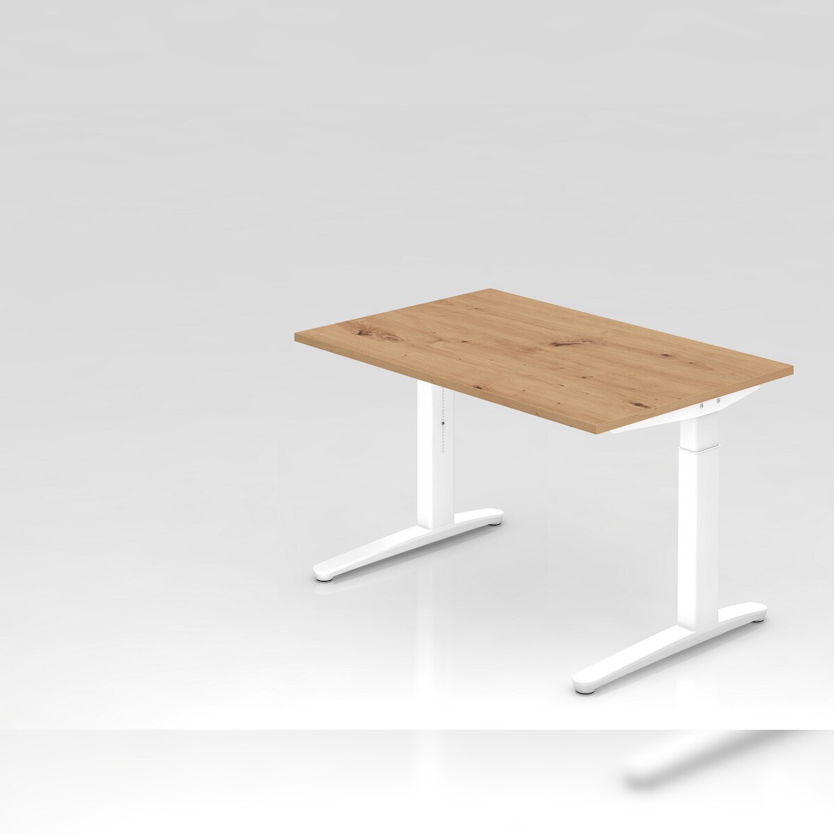 PROREGAL Schreibtisch Mika | Asteiche | Weißes Gestell | BxT 120x80cm | Arbeitshöhe 65-85cm | höhenjustierbar, 1cm Raster | C-Fuß-Gestell