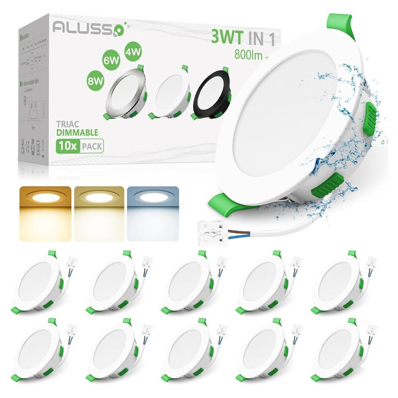 ALUSSO LED-downlight, 230 V, dimmbar, ultraflache LED-spotlights, 68 mm, 3 W, 4 W, 6 W, 8 W, 3CCT (3000 K, 4000 K, 6500 K), IP44, decken-spotlights