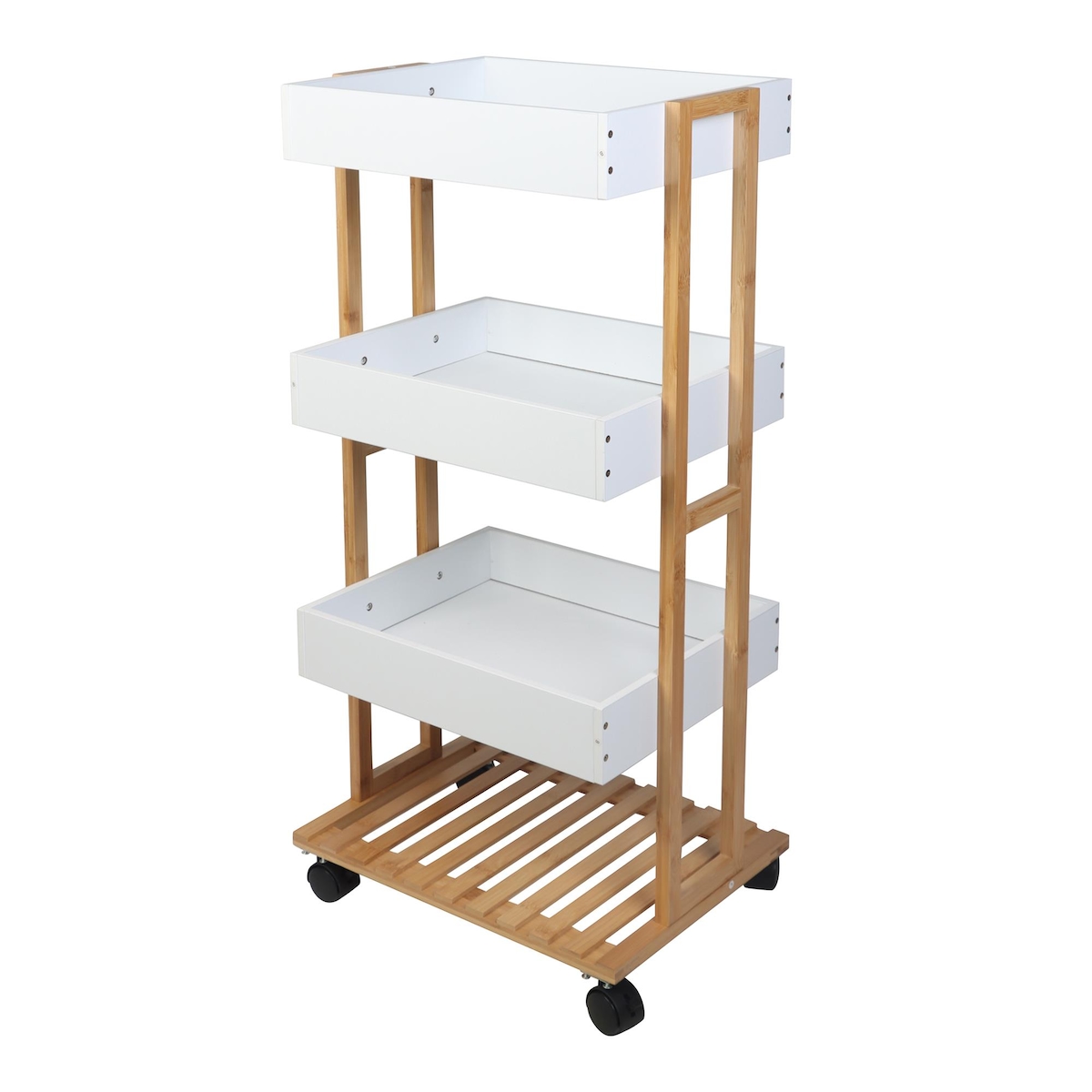 WENKO Rollwagen "Regal Tortona" Badezimmer-Schrank mit 3 Ablagen natur B/H/T: 18cm x 71,5cm x 31cm