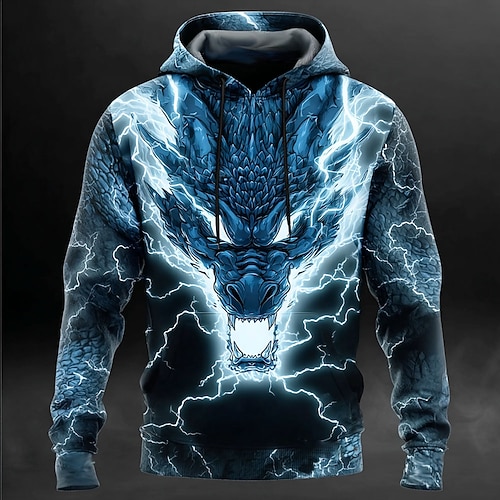Per uomo Drago Stampa 3D Felpa con Cappuccio Felpa 3D Fantasia Manica Lunga Girocollo Regalo Club Abbigliamento casual alla moda Blu Viola Marrone Verde Coulisse Autunno Inverno progettista S M L XL