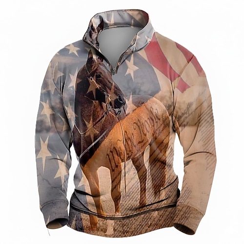 Per uomo Bandiera Americana Cowboy Felpa Etnico Vintage Retrò Collo alla coreana All'aperto Lavoro Regalo Blu Viola Cachi Cerniera Autunno Inverno progettista S M L XL XXL XXXL