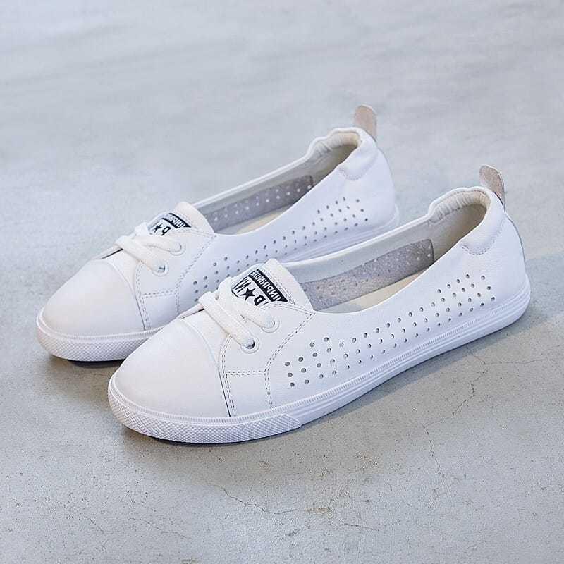 Spring Summer Genuine Leather Shoes Women Flat Causal Shoes Soft Comfortable Fashion Brand Cow Leather Ladies Black White Shoes Plus Size 42 cm white