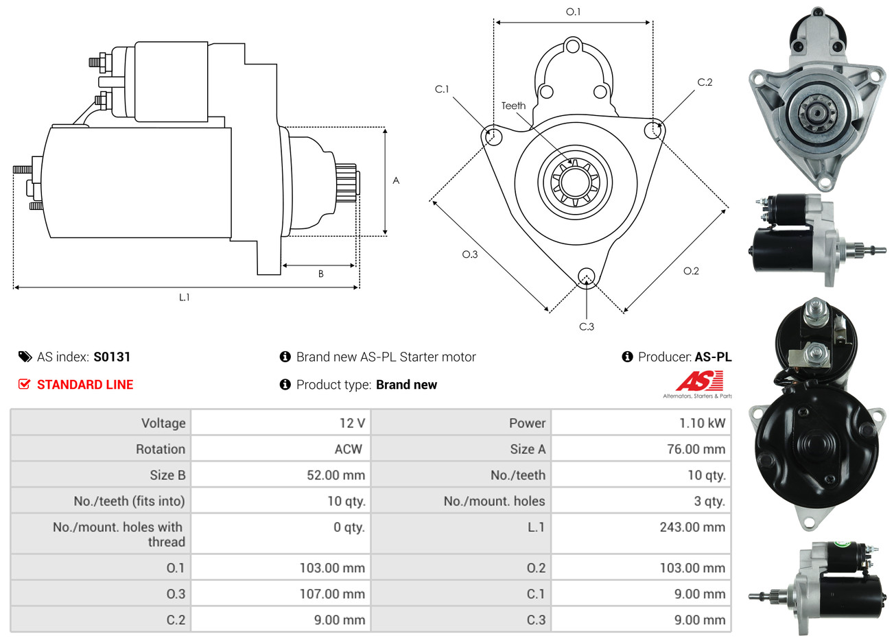 AS-PL Starter 12V für VW 02B911023B 02B911023FX 02B911023F S0131