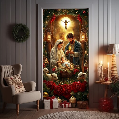 decorazioni natalizie per porte copriporta presepe arazzo natalizio per porte tenda per porta decorazione fondale striscione per porta interno/esterno per porta d'ingresso fattoria storia della