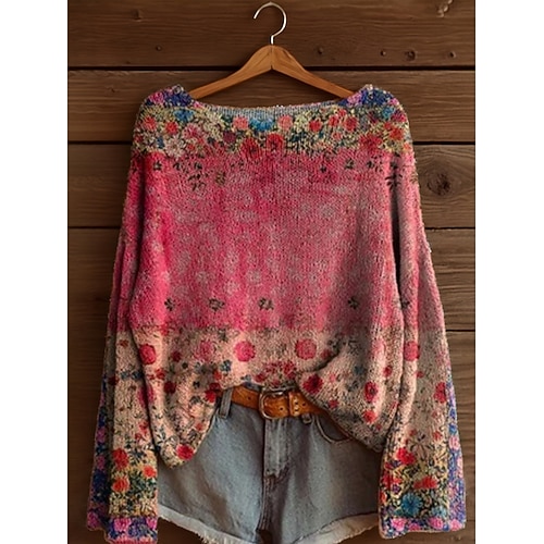Per donna Felpa Casual Morbido Floreale Grafico A Coste Scollo a Barca Lavorato a maglia Stampato Manica Lunga Top Regolari Maglia All'aperto Quotidiano Weekend Rosa Rosso Primavera Autunno