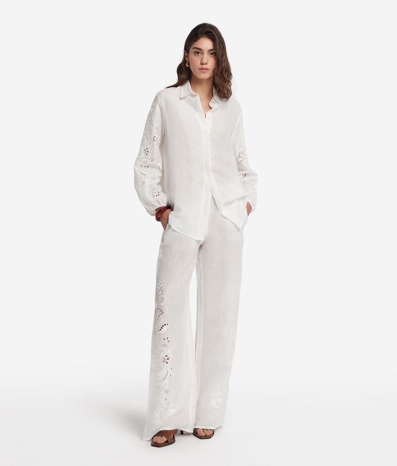 Falconeri Pantalone ricamato in lino Donna Bianco Taglia LL