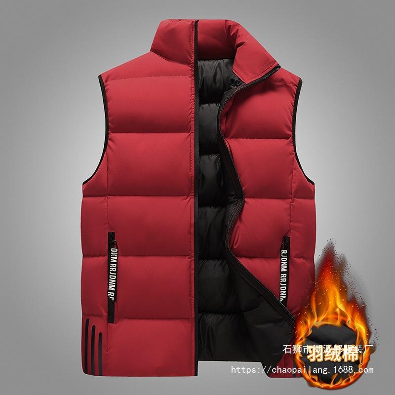 Men's vest new autumn and winter thickened down cotton vest casual stand-up collar large size cotton jacket cm khaki