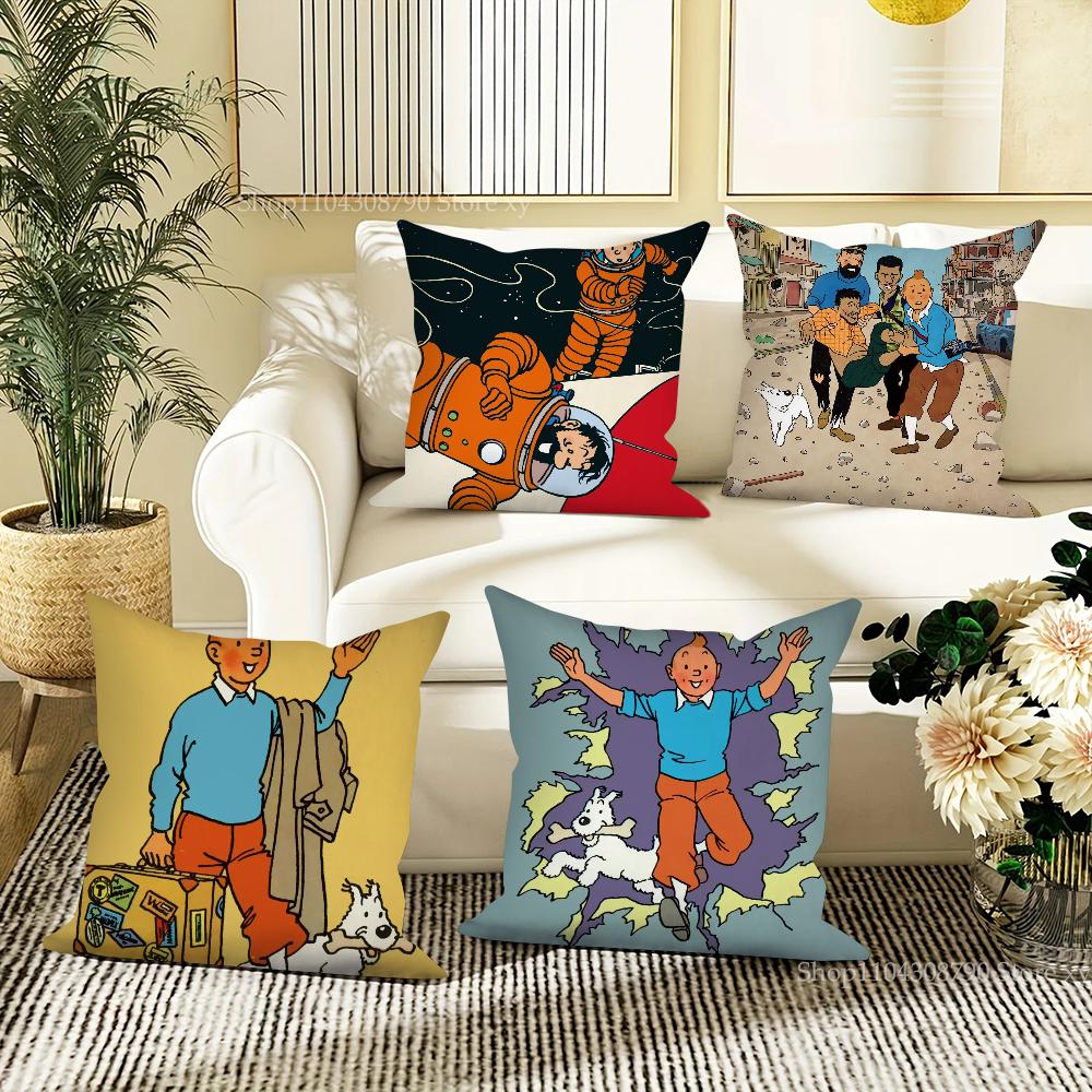 Äventyren med T-Tintin Animations Kuddfodral Fyrkantig Kudde Sovrum Soffa Avslappning Komfort Bil Vardagsrum Heminredning 40X40