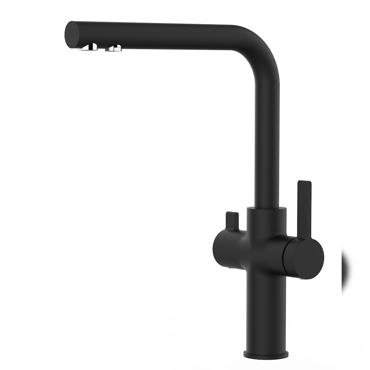 Vizio 3 Wege Wasserhahn Küchenarmatur Spültischmischer FC, Schwarz Matt mit 360° schwenkbarem L-Auslauf