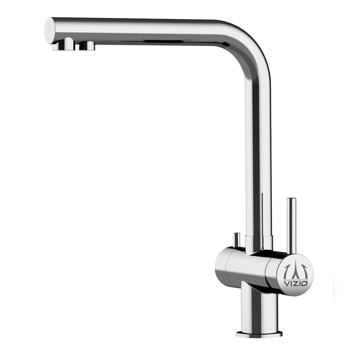 Vizio 3 Wege Wasserhahn Küchenarmatur Spültischmischer, Edelstahl Massiv mit 360° schwenkbarem L-Auslauf, Hochglanz Poliert