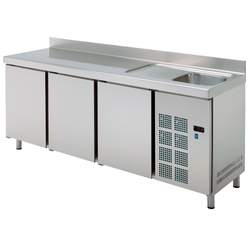 Kühler tisch gn 1/1 3 türen und spüle mit abtropfbecken - 1800x700x850 mm - 190 W 230/1V - 72989509 Eurast