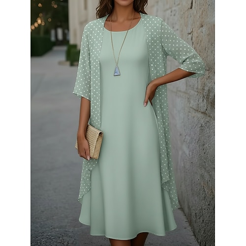Per donna Abito Midi Vestito Casual Set di vestiti Elegante Moda Moderno All'aperto Vacanza Uscire Vestibilità regolare A Pois Manica 3/4 Girocollo Rosa Verde Estate Primavera Autunno
