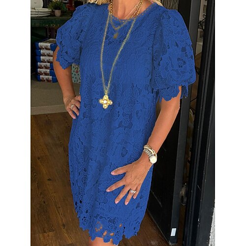 Per donna Abito al ginocchio Abito in Pizzo Vestito Casual Elegante Moda Moderno All'aperto Vacanza Uscire Vestibilità regolare Floreale Semplice Mezza Manica Girocollo Blu Giallo Rosa Blu scuro