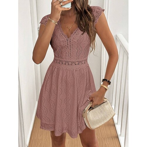 Per donna Mini Abito Abito Bianco Abito in Pizzo Vestito Casual Elegante Moda Moderno All'aperto Vacanza Uscire Vestibilità regolare Semplice Manica Corta Scollo a V Nero Bianco Estate Primavera