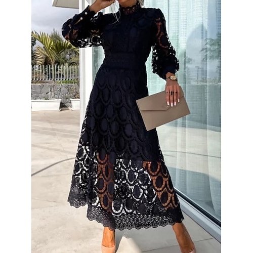 Per donna Abito Midi Abito maxi Abito Bianco Abito in Pizzo Vestito Casual Elegante Moda Moderno All'aperto Vacanza Uscire Vestibilità regolare Taglia piccola Geometrico Manica Lunga Collo Alto Collo
