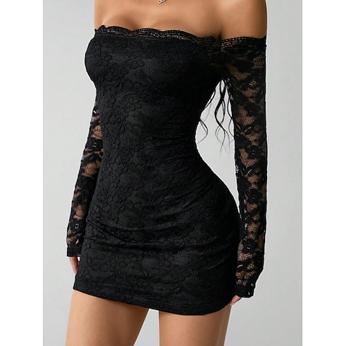Per donna Abito Lungo Maxi Abito Mini Abito Abito nero Abito in Pizzo Vestito Casual Moda Romantico Moderno Quotidiano Vacanza Feste Vestibilità regolare Semplice Manica Lunga Senza Spalle Nero