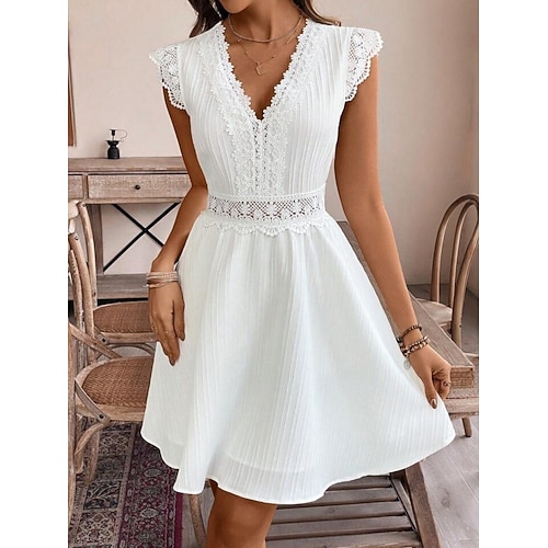Per donna Mini Abito Abito Bianco Abito in Pizzo Vestito Estivo Casual Vacanza Streetwear Ferie Vestibilità regolare Senza Maniche Girocollo Bianco Estate